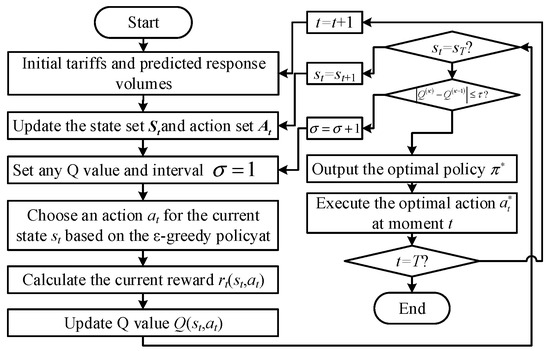 The main objective of the pricing problem presented here is to maximize the action-value function, i.e., a set of optimal actions (each VPP response ), by finding the optimal policy , expressed as follows: