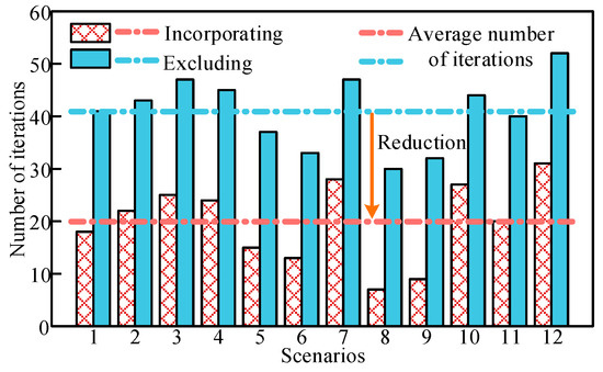 (2) Comparative analysis of the number of iterations and time used for game iterations with and without reference tariffs in all scenarios