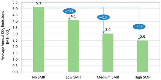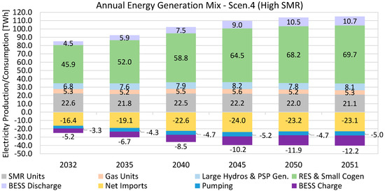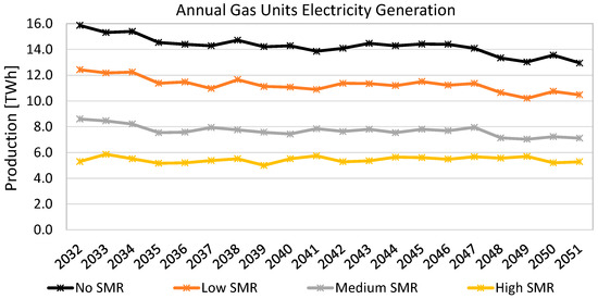 | Scen. 1 No SMR (0 MW) | Scen. 2 Low SMR (648 MW) | Scen. 3 Medium SMR (1564 MW) | Scen. 4 High SMR (3088 MW) | |