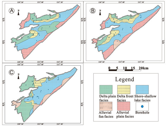- Shen, Y.Y.; Ren, D.J.; Chang, S.L.; Zhang, S.; Liu, Z.L.; Liu, B.; Liu, J. Prediction of sedimentary facies before and after coal accumulation and its controlling effects in Block Yonglenan, Qinshui Basin. Sci. Technol. Eng. 2021, 21, 4352–4359. [Google Scholar]
