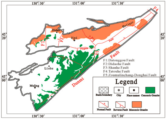 - Zhang, F.Q.; Dilek, Y.; Chen, H.L.; Yang, S.F.; Shu, S.F.; Meng, Q.A. Structural architecture and stratigraphic record of Late Mesozoic sedimentary basins in NE China: Tectonic archives of the Late Cretaceous continental margin evolution in East Asia. Earth Sci. Rev. 2017, 171, 593–620. [Google Scholar] [CrossRef]