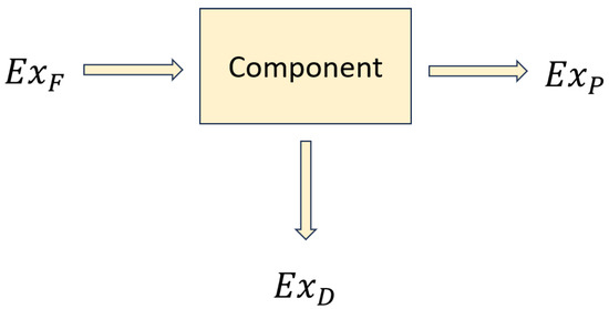 The exergetic efficiency is a meaningful performance indicator, but due to the different nature between the power and thermal outputs, an exergetic approach is often also needed. It is also commonly known as exergy efficiency. Indeed, exergetic performance indicators allow for a better comparison between systems regardless of their temperature levels. In a similar manner to energy efficiency analysis, the amount of exergy entering a given component system or component is equal to the amount of exergy leaving it and the amount of exergy lost in the process (Figure 9).