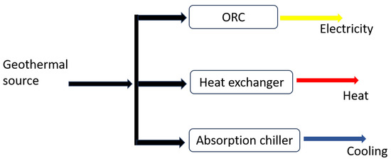 - Habka, M.; Ajib, S. Investigation of novel, hybrid, geothermal-energized cogeneration plants based on organic Rankine cycle. Energy 2014, 70, 212–222. [Google Scholar] [CrossRef]
