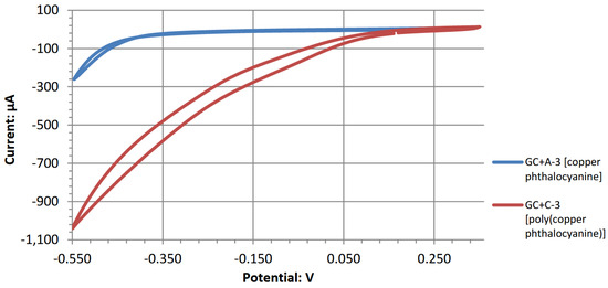 Cyclic voltammogram of copper (II) phthalocyanine.