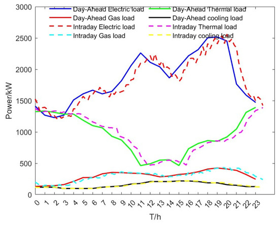 As shown in Figure 6, compared to the original load data, the load after demand response, without changing the user demand for electricity at the same time, reduces the peak hour 18:00–19:00 h and 9:00–12:00 h loads and improves the load in the valley hours to effectively consume new energy generation.