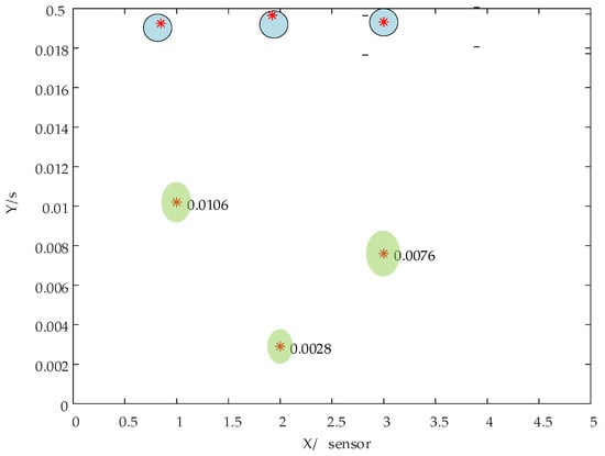 Experiments were performed in Scenario 3 to compare the conventional GCC algorithm with the improved GCC-PHAT algorithm. The time differences for each of the three sensor groups were recorded, and the data were subsequently transferred to a computer for analysis. The resulting graph, shown in