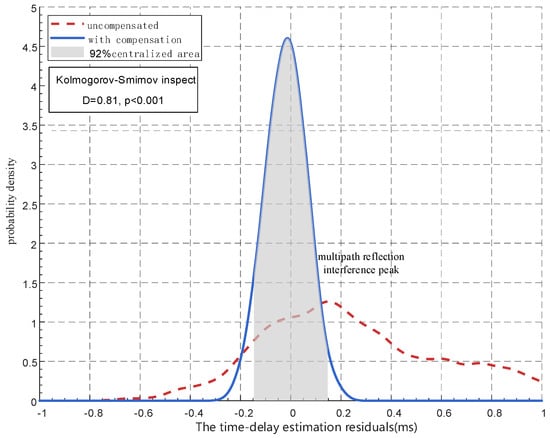 Figure 13 further illustrates the changes in the residual distribution of the delay estimation before and after compensation.