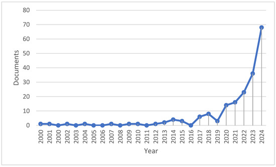This study was structured around three core methodological components, aligned with the main contributions of this research. First, a comprehensive literature review was conducted using the Scopus and ScienceDirect databases, focusing on publications with the keywords “sustainable development” and “energy transition”. The analysis demonstrated a significant growth in academic attention to these topics: from a single publication in 2000 to 68 in 2024, an increase of 67 times (Figure 7). This upward trend reflects the global urgency of transitioning to sustainable energy systems. The reviewed literature was categorized into key conceptual domains that form the analytical foundation of this study: