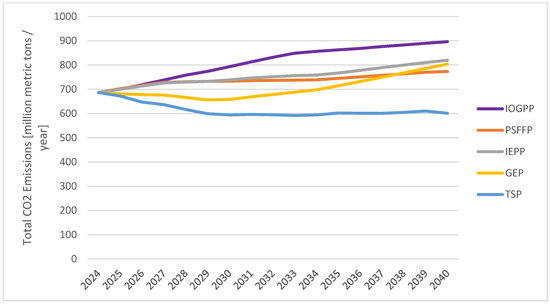 Most studies highlight the immediate effects of these scenarios on sustainability [14,42,64,65]. As shown in Figure 9, reform-oriented scenarios, particularly the TSP, are expected to deliver the most substantial environmental benefits by 2040. Specifically, CO2 reduction under the TSP scenario is projected to reach 600 million tons annually by 2040. However, achieving these long-term benefits is contingent on economic, political, and technological factors, which may be influenced by external uncertainties such as global climate policy, energy markets, and future technological developments.