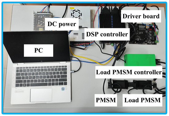 To ensure fairness, the controller parameters were optimized through numerous repeated tests, considering both dynamic and static performance. The parameters of the controllers used in the experiments are shown in Table 4. For the surface-mounted PMSM, the PI parameters within the current loop were configured as and .