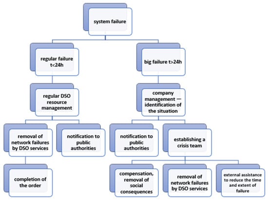 Outages resulting from the maintenance schedule are referred to as planned outages, and their duration is counted from the moment the breaker is opened until the energy supply is resumed. Seven days in advance, using available media and posting appropriate notices in publicly accessible places or notifying (by letter, telephone) each customer individually, but only if they are connected to a network with a rated voltage higher than 1 kV. If the DSO fails to comply with the above obligation, then an unplanned outage is assumed to occur and the management process related to minimising the consequences of the outage is shown in