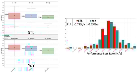 Over the past two decades, field monitoring of 120 PV systems shows that crystalline-silicon modules experience median performance losses of about 0.6–0.7% yr−1 (inter-quartile range 0.4–0.9% yr−1), whereas thin-film modules degrade more rapidly, typically 0.8–1.1% yr−1. These values are derived from the STL and YoY analyses shown in Figure 12 of the performance-loss-rate benchmarking study [91]. Ignoring this degradation would lead to an 8–12% underestimation of the 25-year LCOE. Over the same period, global cumulative PV capacity soared from about 1 GW in 2000 to 1 419 GW in 2023, corresponding to a compound annual growth rate of roughly 36% [5]. Figure 13 charts the 2000–2024 uptake of building-integrated and distributed PV; its post-2008 S-curve hints at a further 25% cost-learning reduction potential in the coming decade. Daily-resolution yield records from 32,744 ≤ 30 kWp rooftop PV systems in six European countries (2012–2019) reveal a pronounced south-north specific-yield gradient (800–1500 kWh·kWp−1·yr−1) and show no statistically significant decline in median performance ratio (0.72–0.76) during the first eight years of monitored operation [31].
