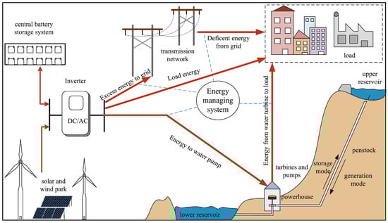 The negative impacts of integrating green electricity and energy storage on the power grid, as well as their corresponding solutions, were also studied. According to a study by Liu et al. [11], the integration of RE sources into the power supply system may add strain to the existing utility grid. To address this challenge, a solution implementing a business model that incorporated a grid penalty cost was proposed. This model considered local time-of-use electricity price, and both imported power from the grid and exported power to the grid [12]. Additionally, a new approach estimated renewable energy’s maximum penetration and its effects on the public power grid [13], indicating that grid capacity was saturated when PV and wind power accounted for 25% and 60%, respectively, of total generation [13].
