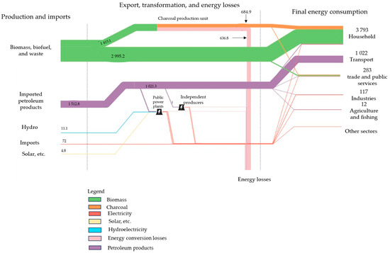 Sankey diagram of Burkina Faso’s energy balance (in ktoe) for 2018 [26].