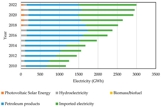 National electricity production by energy source and annual imports from 2010 to 2022 [12].