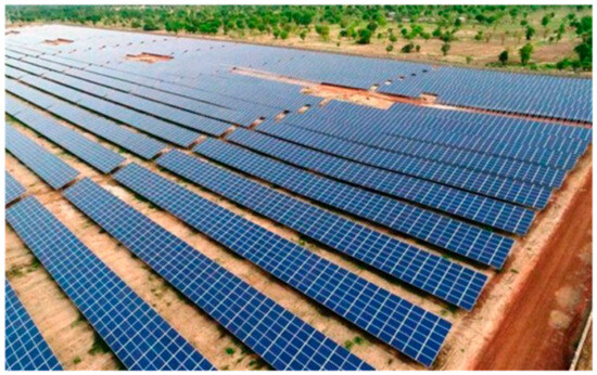 National production rose from 671.2 GWh in 2013 to 1506.1 GWh in 2022. More than 80% of the electricity produced was of fossil fuel origin in 2022 [32]. In 2023, six photovoltaic power stations were installed and were in operation, the largest of which, illustrated in Figure 4, has a capacity of 33.7 MWp and has been in operation since 2017, covering an area of 60 hectares [33]. Several other solar photovoltaic or hybrid diesel/photovoltaic power plants or mini-grid plants are also in operation (Figure 5). The total installed photovoltaic capacity was 159.9 MWp in 2023 [10]. In 2022, the total installed solar photovoltaic capacity represented 8% of the total capacity of power plants installed in Burkina Faso [32]. In recent years, the government has increasingly encouraged private companies to exploit this energy source. In addition, a vast campaign to install mini photovoltaic solar power plants connected to several public buildings and socio-community centers (maternity wards, schools, health centers, etc.) began in 2018. The aim is to reduce the state’s annual electricity bills to several million euros a year [34]. Unfortunately, surveys have not yet been carried out to see the real impact of these installations on electricity bills.