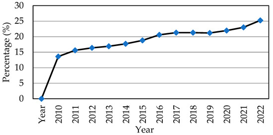 Although Burkina Faso’s energy supply has increased in recent years, it is still one of the countries in sub-Saharan Africa with the lowest rate of access to electricity. Figure 7 provides an overview of the evolution of the electricity access rate in Burkina Faso from 2010 to 2022.