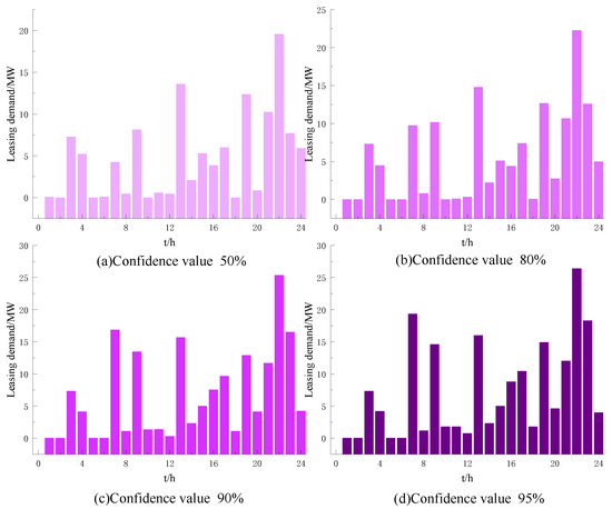 The difference in confidence values will lead to different leasing demands for WFCO in different time periods. The confidence values are set to 50%, 80%, 90%, and 95%, respectively, and conduct sensitivity analysis as shown in Figure 2.