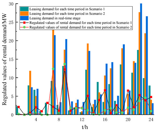 Regulation values of SESO leasing demand in different scenarios during real-time stage.