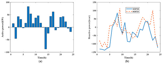 Active and reactive powers of SOPs at different time periods: (a) active power; and (b) reactive power.