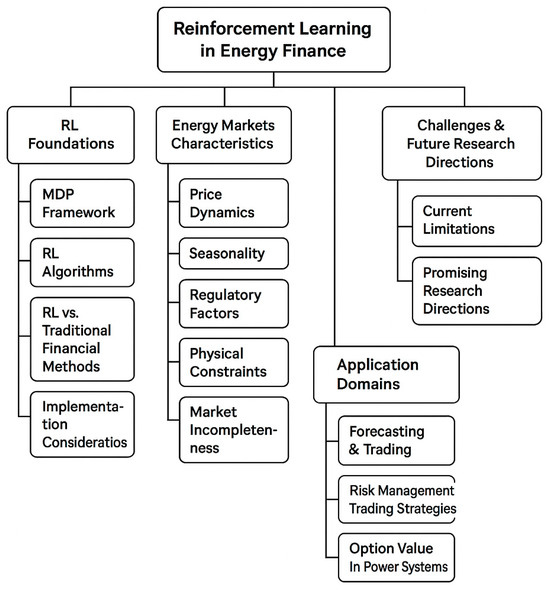 The remainder of this paper is organized as follows: Section 2 provides the theoretical foundations of RL and its relevance to financial applications. Section 3 examines the specific characteristics of energy markets that make them suitable candidates for RL approaches. Section 4 reviews the literature on RL applications in energy price forecasting and trading strategy optimization. Section 5 focuses on derivatives valuation in energy markets using RL, including options pricing and real options analysis. Section 6 discusses implementation challenges and methodological considerations when applying RL to energy finance problems. Section 7 discusses option value in power systems, particularly regarding smart grid technologies. Section 8 concludes the paper with a synthesis of key findings and perspectives on the future evolution of this field.