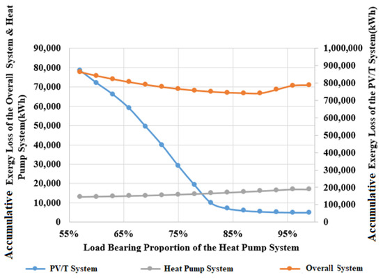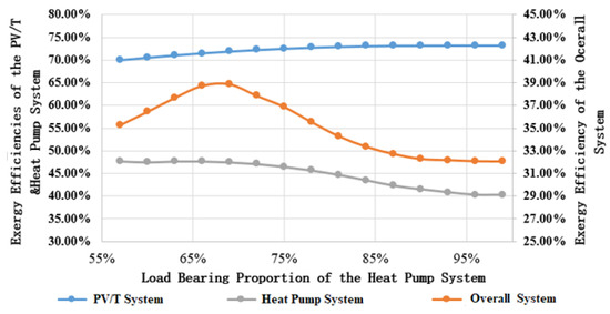 Thus, the exergy loss, electrical exergy efficiency and thermal exergy efficiency of the PV/T collector system can be calculated via Equations (14)–(16a):