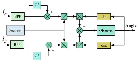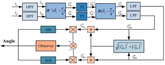 This establishes a stationary-frame position error extraction method. By driving the rotor position error to zero via an observer, the estimated position converges to the actual value. The block diagram of the stationary-frame position extraction principle is shown in
