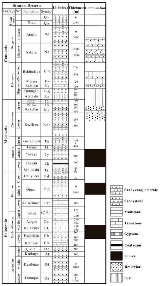 Generalized stratigraphic column for the piedmont of southwestern Tarim Basin (modified after [,]).