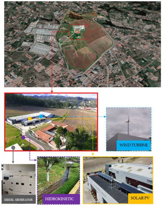 Focusing on Ecuador, it was identified that the country has high ecological biodiversity and fragile ecosystems, which are unique in the world, especially in the Galapagos Islands and the Amazon [6]. The resulting droughts have affected the same wetlands in the Andes mountain range that serve as sources of water supply [7]. These effects led to a significant reduction in river flows, and since Ecuador is highly dependent on hydroelectric power generation, it was urgent to rationalize its electricity service [8]. These decisions, which included power outages of up to 14 h, caused a series of difficulties and discomfort for citizens [9]. Unfortunately, the lack of sound decisions in recent years, particularly due to the underutilization of diversified energy sources with significant budgets, has led to a downward spiral into this energy crisis [10]. In 2025, the electricity service normalized thanks to the return of rain [11,12]. However, several institutions have taken the crisis as a lesson and are seeking solutions to prevent the ghosts of blackouts from returning [13,14,15]. For this reason, their campuses have begun to invest in renewable energy [16]. Among the technologies most leveraged is solar photovoltaic, which is easily implemented in areas that often go unnoticed, such as rooftops. This case study examines a hybrid system designed to harness the energy potential available on campus, which has ample space and can leverage existing infrastructure.