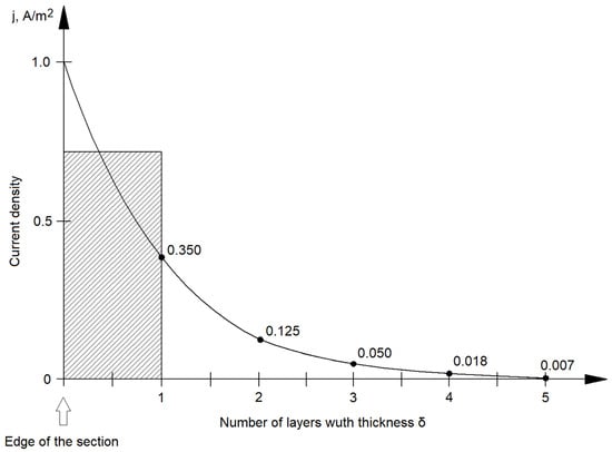 Penetration depth of magnetic field waves: Current density distribution in a conductor during the skin effect [16,21].