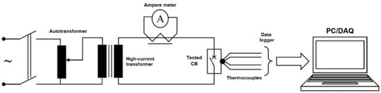 Diagram of the measurement system of the tested current path of the compact circuit breaker.