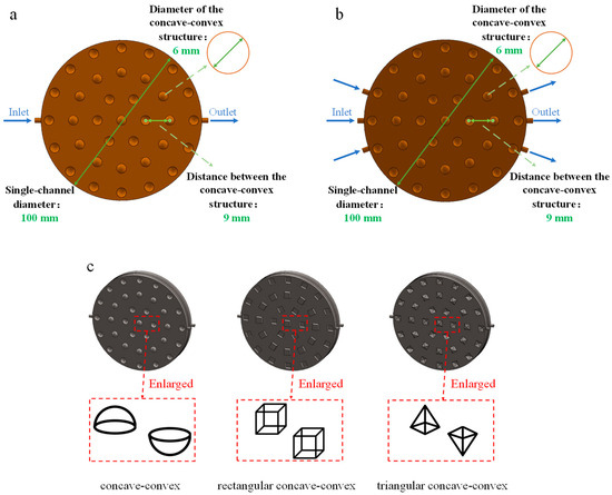 The shape of concave–convex structure and configuration of the inlet/outlet.