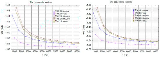Phase shift angle (θ), rad, parallel-plate and concentric systems.