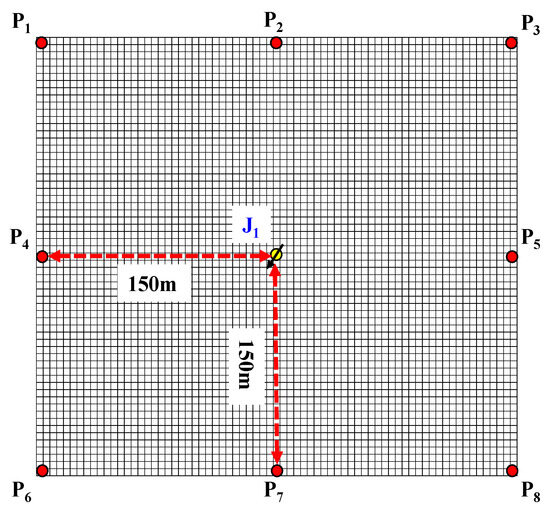 This model was established using a differential simulation algorithm to simulate an alternating well pattern (see Figure 9), which includes a total of 1 injection well and 8 production wells, with a well spacing of 150 m. The injection parameters for the injection wells are shown in Table 7.