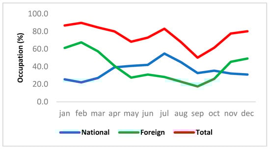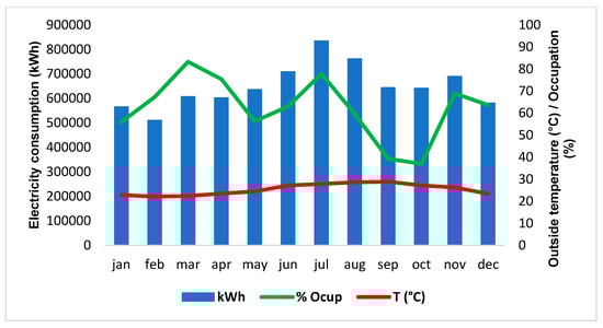 Table 8) during 2019 based on monthly occupancy (%) and average monthly temperature (°C). The statistical significance (