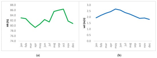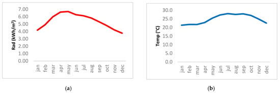In order to characterize the climate of the destination and determine the viability of alternative energy sources, the monthly behavior of solar radiation, average temperature, wind speed, and relative humidity in Puerto Vallarta and Nuevo Vallarta for the period 2017–2019 are presented below (