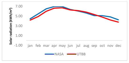 31]. The average annual wind speed was 2.2 m/s, with a minimum of 1.8 m/s in December and a maximum of 2.7 m/s in May. Based on these data, it is concluded that the wind power generation potential in the area is limited, as at least 4 to 6 m/s is required for wind generators at a height of 10 m above the ground [