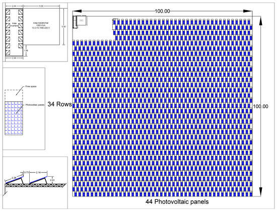 Table 10. This distribution considers an adequate separation to avoid shading between panels during the winter, optimizing the capture of solar radiation for a latitude of 20.5° N (