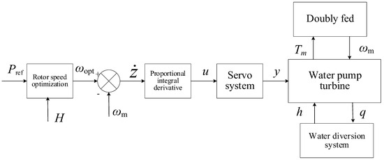 The speed control system of a pump turbine primarily comprises a speed optimization system, governor, servo system, pump turbine and diversion system, and DFIG. The control structure is illustrated in Figure 2.