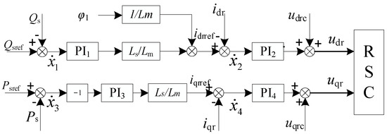 where x1 and x3 represent intermediate variables introduced by the power control outer loop; and x2 and x4 denote intermediate variables from the rotor current control loop.