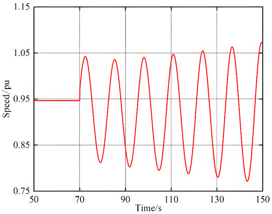 The dominant state variables of OM3 (λ5 and λ6) are the variation value of the DC voltage ∆udc and the deviation value of the DC link voltage ∆x5. Therefore, it is primarily related to the voltage variation on the DC side of the converter and is inevitably affected by the external control parameters of the GSC voltage. Maintaining a constant DC side voltage can effectively suppress OM3, and this OM is not related to the state variables of the pump turbine speed control system.
