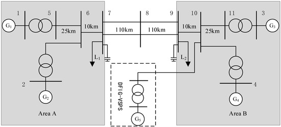 The structural diagram of the connection of the DFIG-VSPS unit to the single-machine infinite bus system is shown in Figure 7.