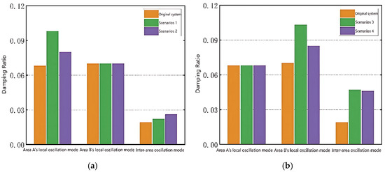 Using MATLAB, a total of 16 eigenvalues of the state matrix were solved, and the corresponding damping ratios were calculated, as listed in Table 1.
