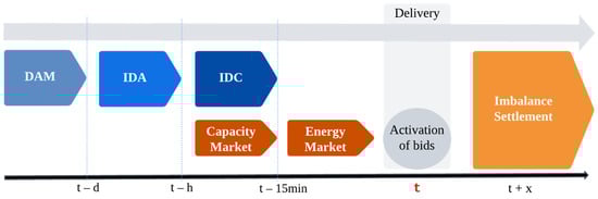 - Poplavskaya, K.; Lago, J.; Strömer, S.; de Vries, L. Making the most of short-term flexibility in the balancing market: Opportunities and challenges of voluntary bids in the new balancing market design. Energy Policy 2021, 158, 112522. [Google Scholar] [CrossRef]