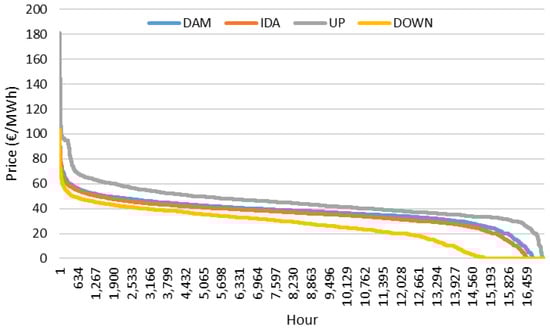Figure 5 presents the market price monotone curves in the DAM and IDA and for up- and down-regulation during 2009–2010. Because, in this period, the IDC was not in place, it is considered that the IDC has the same prices of the DAM.