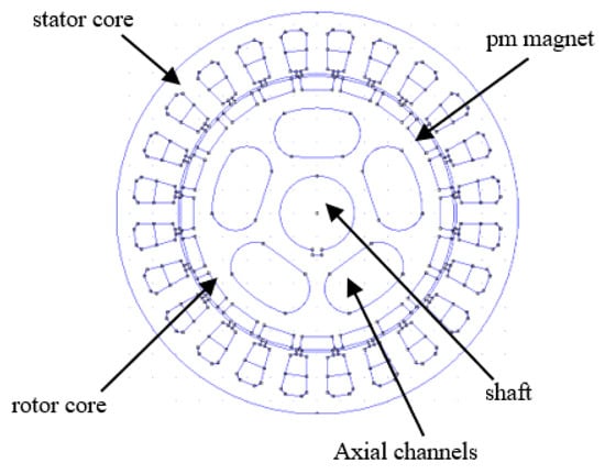 - Liu, T.; Huang, S.; Gao, J.; Lu, K. Cogging Torque Reduction by Slot-Opening Shift for Permanent Magnet Machines. IEEE Trans. Magn. 2013, 49, 4028–4031. [Google Scholar] [CrossRef]