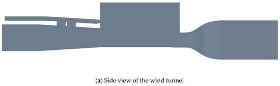 2. Virtual Wind Tunnel: Accurately replicates the actual wind tunnel structure, including the contraction section, nozzle, and intake, etc. The contraction section accelerates the airflow, the nozzle precisely controls the speed and direction of the airflow, and the intake stabilizes the airflow, reducing vortex interference, creating a realistic wind tunnel environment for the vehicle model, and ensuring the reliability of the simulation results. The structure and dimensions of the wind tunnel are shown in Figure 2.