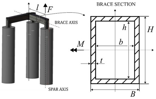 Thus, assuming an approximately constant force applied by the hydrodynamic actions on the spars, a constant thickness, and a constant aspect ratio of the section, (square section) to ensure the same stress level in the tripod structures, the following relation between the structure length, , and the section height, , should be assumed: