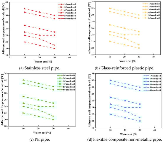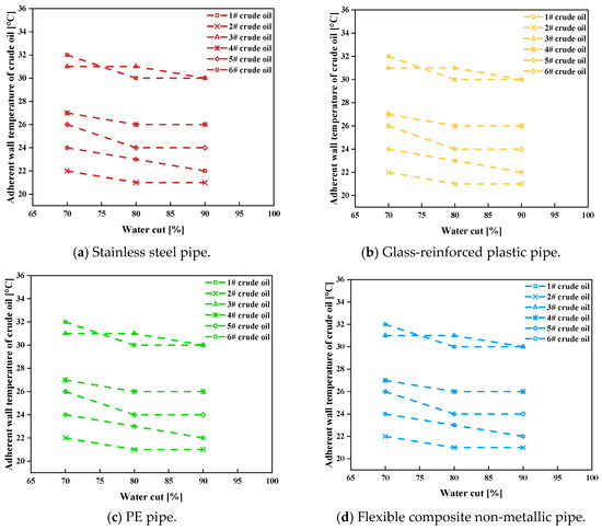 - Hu, X.-Y.; Zhao, X.-L.; Ma, C.-Y.; Wang, Z.-X.; Liu, Y.-C.; Liu, J.; Cao, J.; Zou, T.; Li, J. Experimental Study on Wall Sticking Occurrence Temperatures of High Water Cut Crude Oil Gathered and Transported at Normal Temperatures. In Proceedings of the International Petroleum and Petrochemical Technology Conference, Beijing, China, 27–29 March 2018; Shemwell, S.M., Lin, J., Eds.; Springer: Singapore, 2018; pp. 128–135. [Google Scholar]