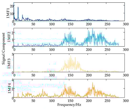 IMF1 primarily reflects the low-frequency trend, while IMF2 and IMF3 capture the mid-frequency components of the signal, representing mid-term fluctuations. IMF4 mainly contains high-frequency noise and interference. The spectral characteristics are comprehensively analyzed based on the time-frequency distribution presented in Figure 5.